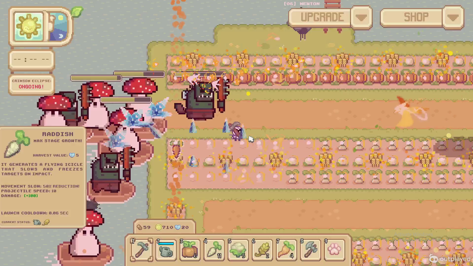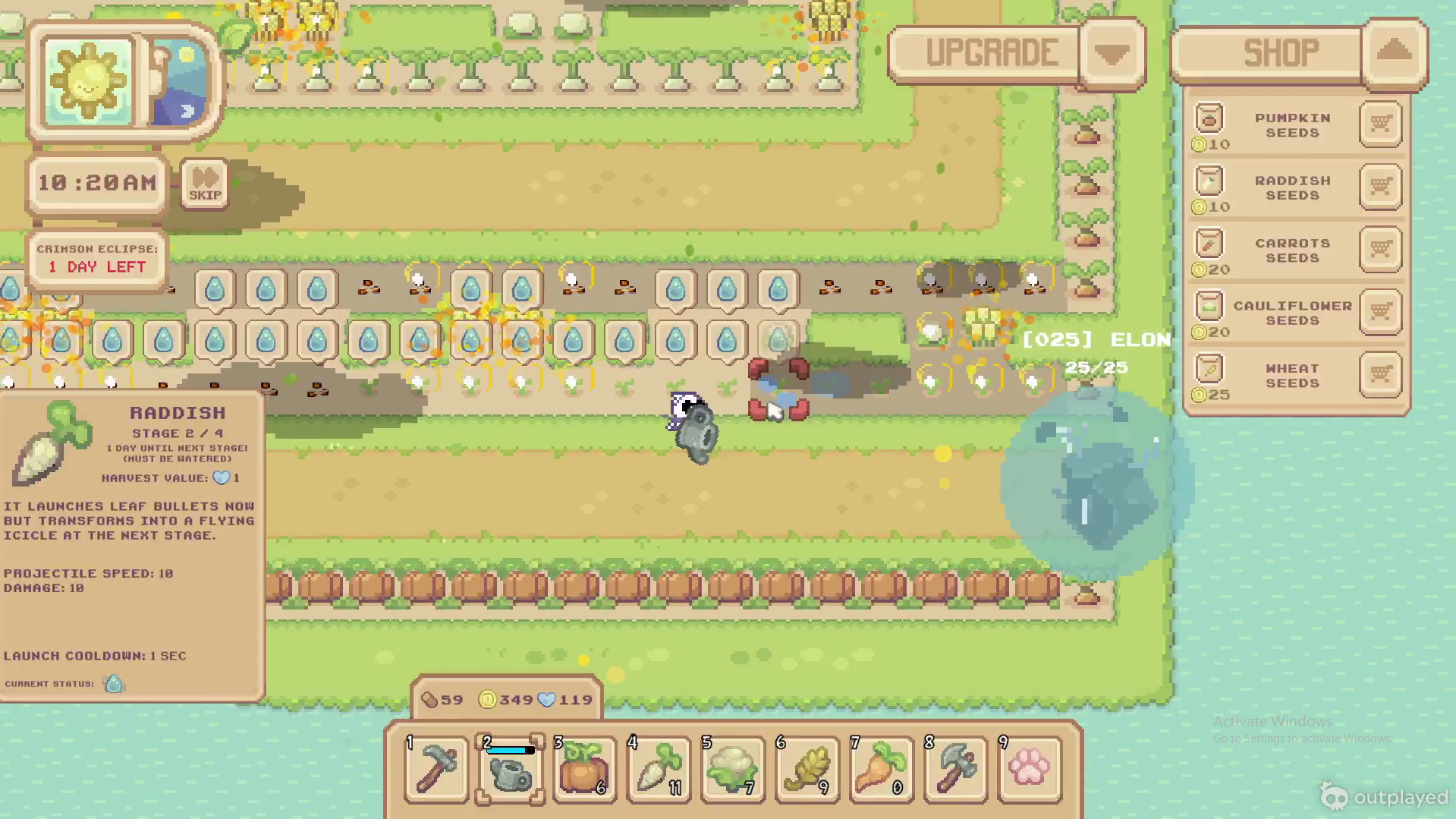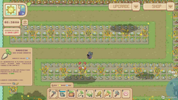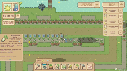 Hello! I tried the new update and there are so many things I have to say. To start, like last time, the art style and the music are fantastic. I especially like the new enemies and their animation. Then, there are a few tile-map bugs. It mostly happens when using the hoe in a non-cubic way or when watering. After, there's a major difficulty curve problem. When starting the game, I tried planting, as it was a new system, but then I realized it was more of a tower defense type game and planted every pumpkins I had at the beginning of the road. Just those pumpkins easily killed all the enemies and gave me enough money to buy 30 more of them. I planted them right by the start again and the enemies didn't manage to go further until many many eclipses later. By that time, the island had been full of op plants on every possible spots. In resume, the enemies did not get difficult quickly enough/ the money drops are way too high. Lastly, since the only thing I could do is plant crops and water them, it became boring very fast. From the moment I had planted everything and watered them, I had nothing else to do but to wait or skip days, which made me want to stop playing.