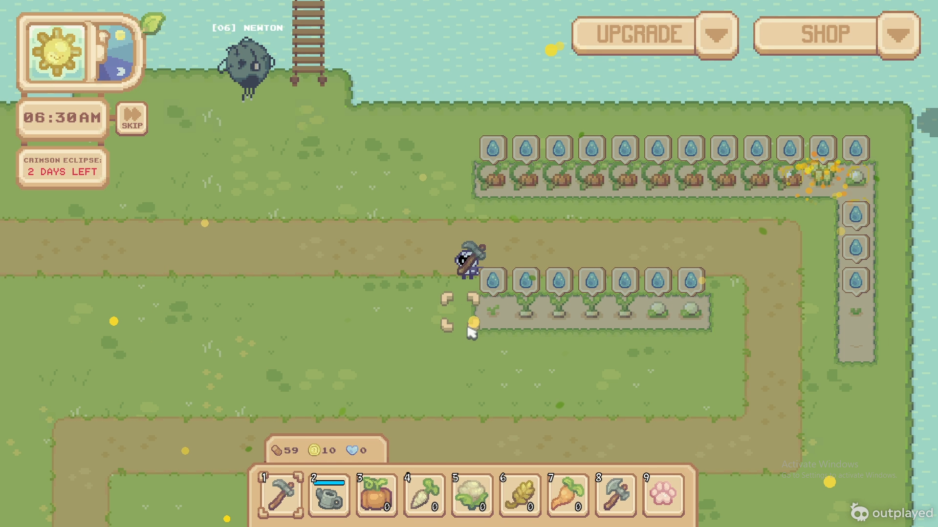 I am now looking for a way how to keep the player engaged if they don't have to plant or if it is not yet Crimson Eclipse. I am planning to add what Stardew did, like there are NPCs to talk and get quests, fishing maybe and exploration.